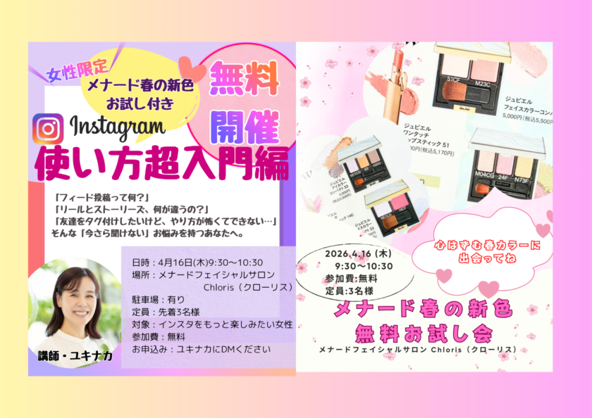 〜メナード春の新色お試し付き(60分・無料)〜